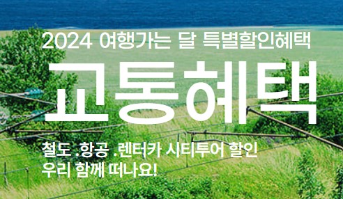 철도와 항공 등 최대 50%까지 할인을 받을 수 있습니다. 철도와 항공 할인권은 5월 16일부터 사전 예매를 할 수 있지만 예산 소진되면 조기마감 할 수 있으므로 서둘러서 원하는 교통 할인혜택 받으시기 바랍니다.