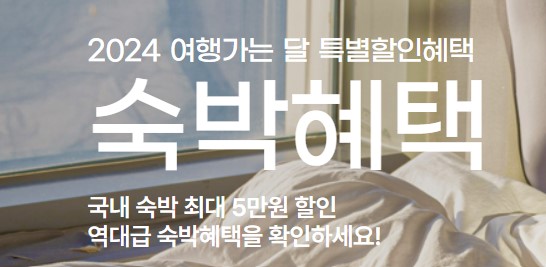 - 12개 광역 지자체(강원, 경남, 경북, 광주, 대구, 대전, 부산, 울산, 전남, 전북, 충남, 충북)에서 숙박할 경우 온라인으로 7만 원 이상 숙박 상품 예약 시 5만 원 할인쿠폰 제공