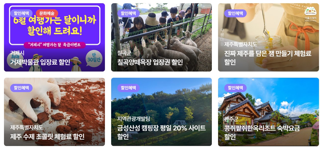 문화체육관광부와 한국관광공사는 전국 각 지역의 아름다움을 알리고 국내 여행을 통해 경제를 활성화하기 위해 5월 14일부터 6월 30일까지 '6월은 여행 가는 달' 캠페인을 진행하면서 철도, 항공, 숙박뿐만 아니라 지역별 숨은 관광지 등 여러 가지 분야에서 할인혜택을 제공하고 있습니다.